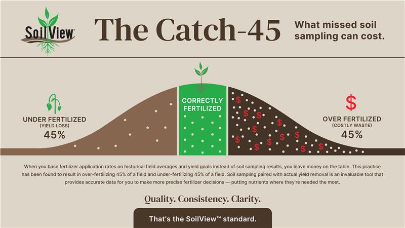 Data from SoilView indicates that without soil testing, only about 10% of a field is properly fertilized, while the remaining acreage is split evenly between over- and under-application. Industry specialists say consistent, systematic soil sampling enables growers to identify nutrient variability, improve application timing, and reduce inefficiencies.